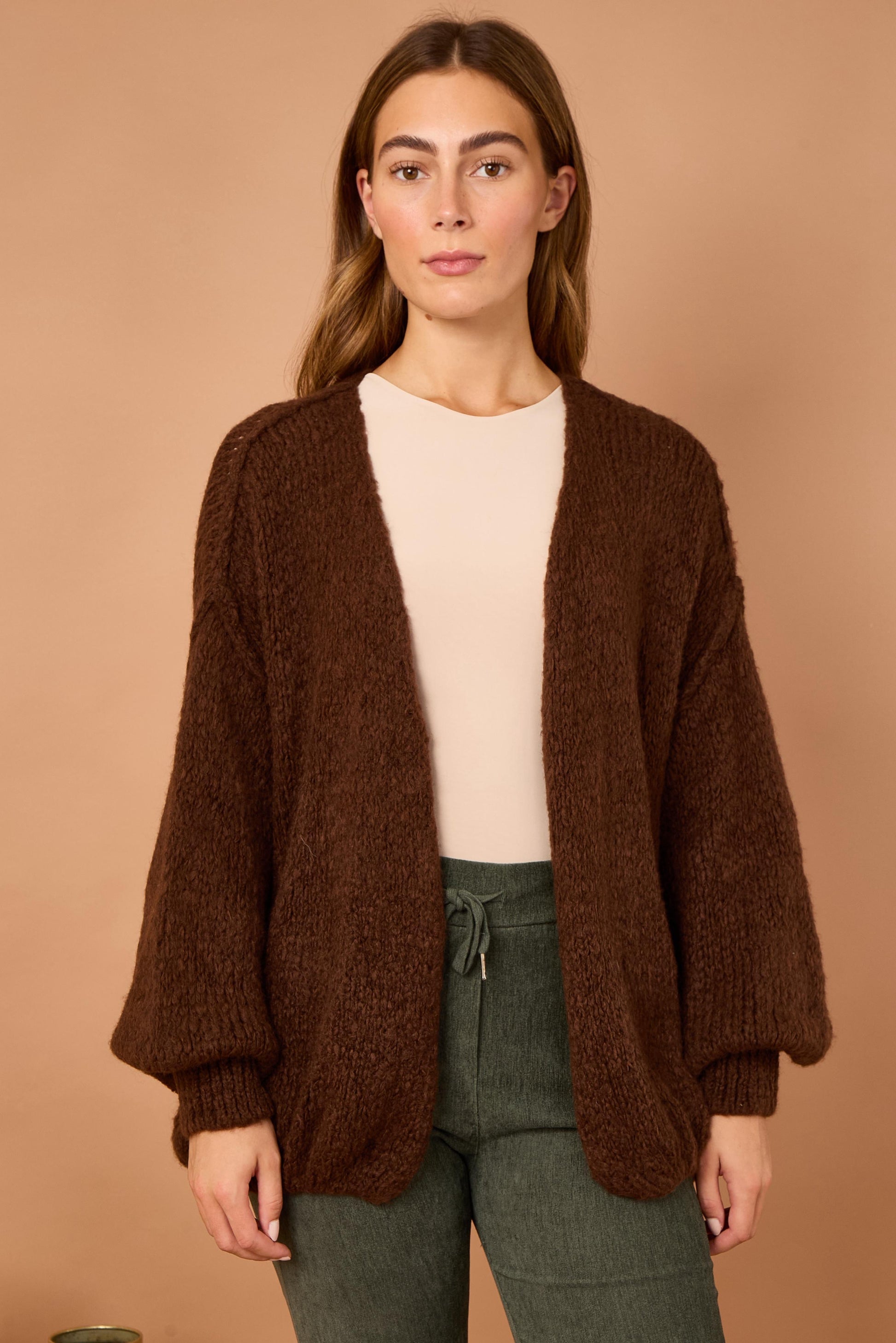 Mohair feel balloon sleeve cardigan